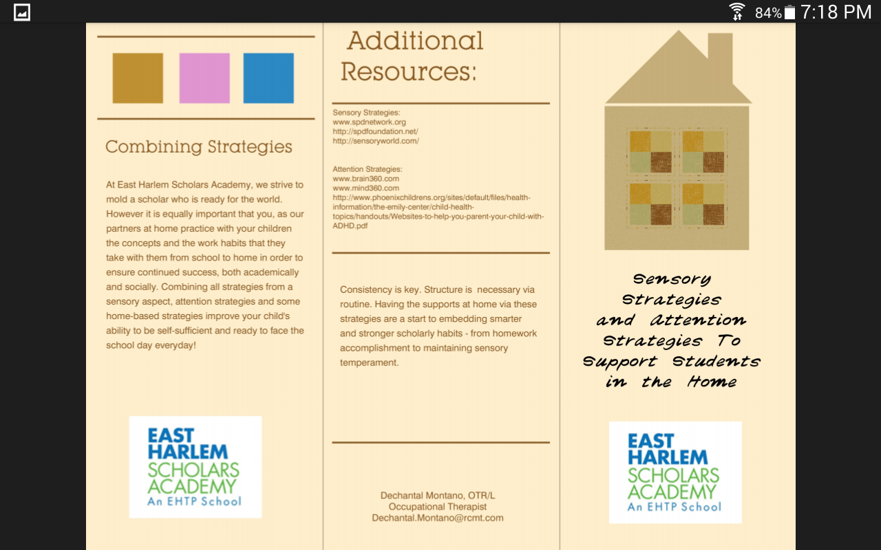 Thank you to the parents of East Harlem Scholars Academy in New York, NY for coming to a seminar today on campus.  This brochure was provided to them by one of ESNP’s therapy partners to the parents as a quick reference to help their children at home. If you would want to use this free resource, or want to use the information in the brochure, just contact us via email or through this site.